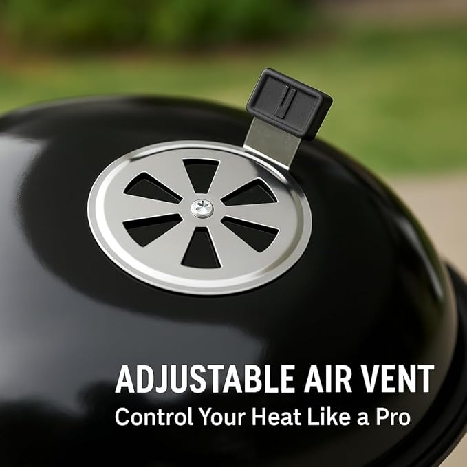It has a porcelain-enameled lid and bowl that are easy to clean and a built-in lid thermometer that helps you monitor the cooking temperature. The grill also features a One-Touch cleaning system that makes it easy to remove ash and debris.